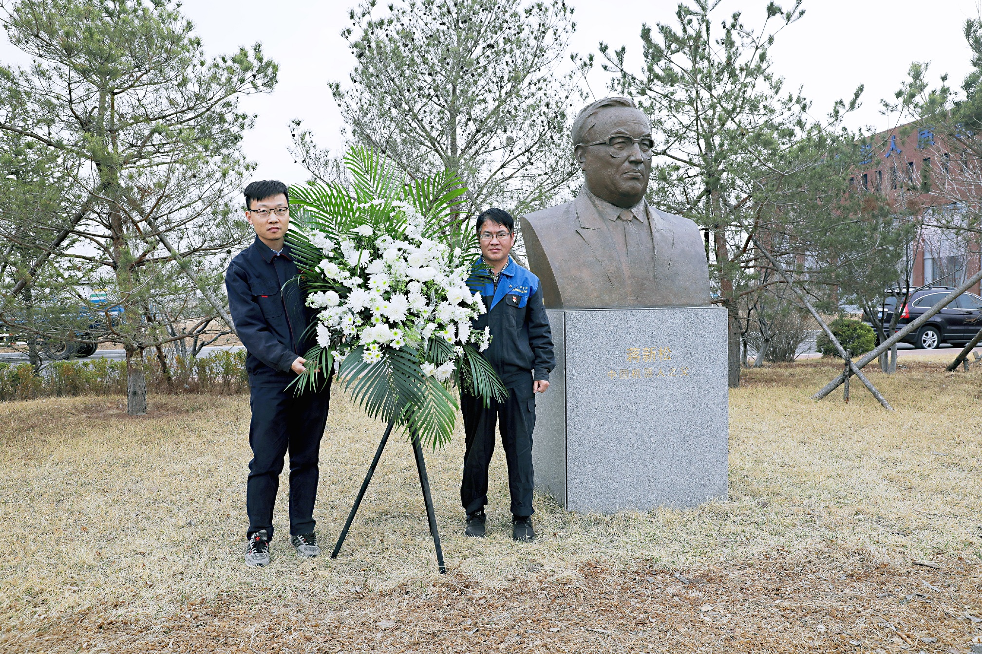 劉開周、唐元貴為蔣新松像敬獻(xiàn)花籃