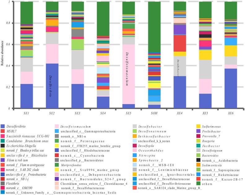 鋼鐵腐蝕銹層中細(xì)菌群落在屬水平上的相對(duì)豐度