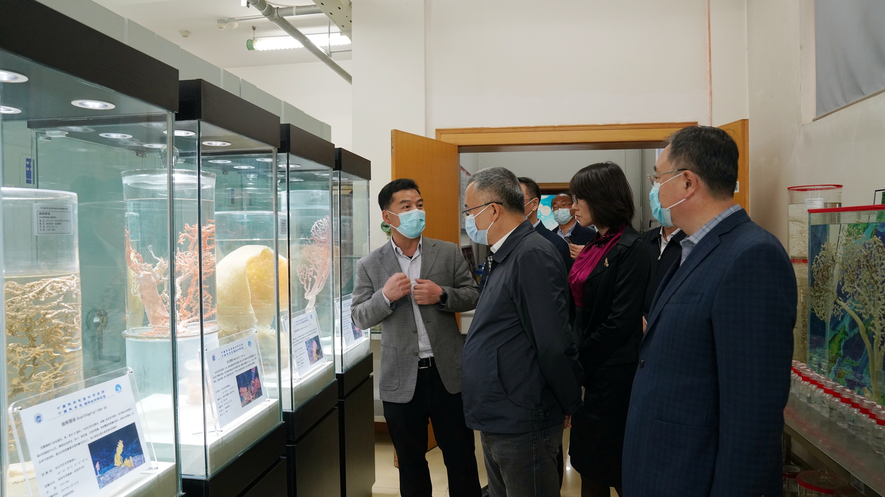 在中科院海洋生物標(biāo)本館深海樣品庫,孟慶海副主席聽取了海洋所在深遠(yuǎn)??瓶寄芰ㄔO(shè)、深海原位探測研究方面的成果匯報,實地考察了獲取的深海大型生物、巖石樣品及圖像、視頻資料。
