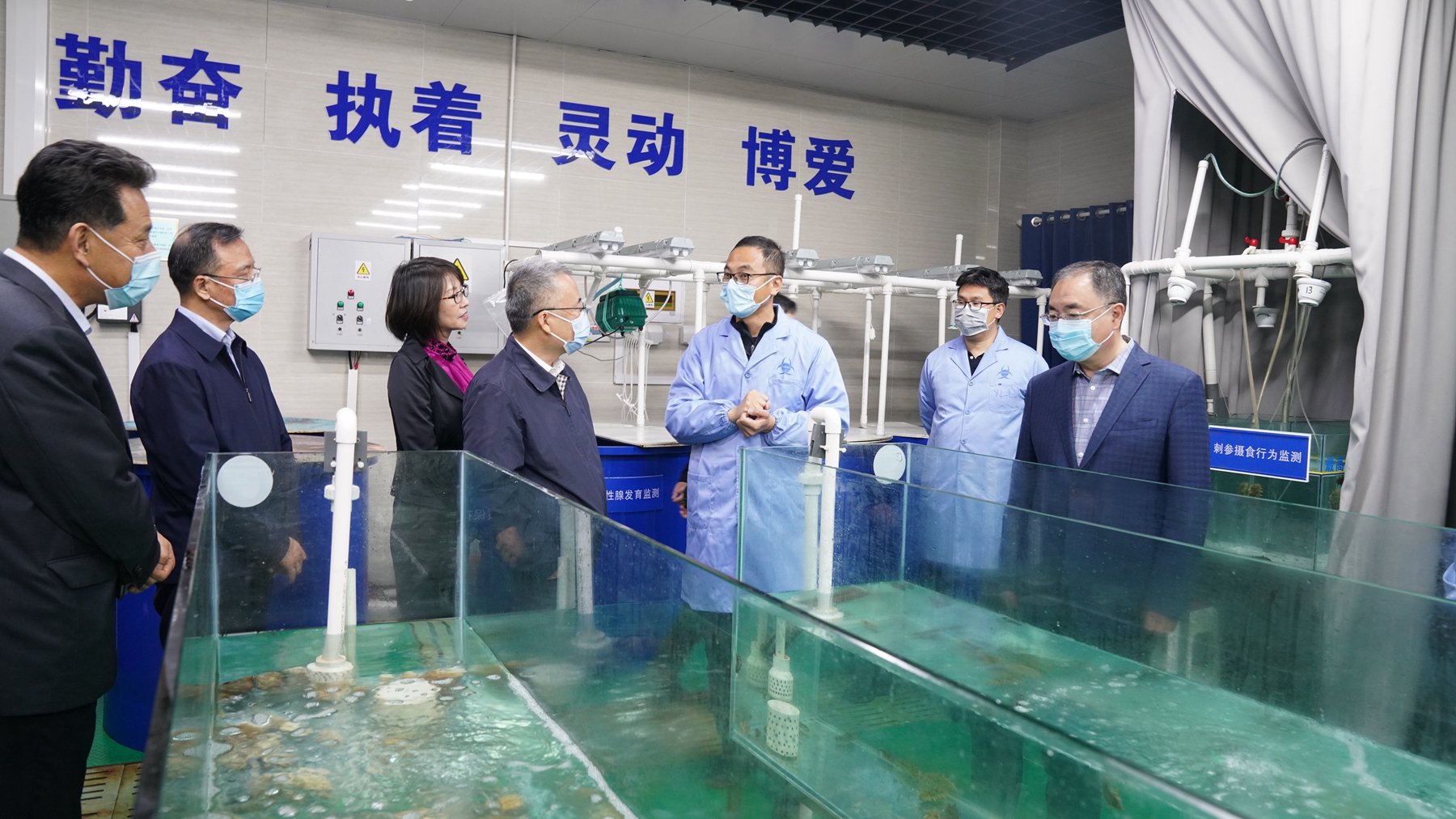在中科院海洋牧場工程實驗室,科研人員詳細(xì)匯報了海洋所在海洋牧場理論創(chuàng)新、生境修復(fù)、資源養(yǎng)護、安全保障、融合發(fā)展、新品種培育與示范推廣等方面取得的系列成果,介紹了循環(huán)水養(yǎng)殖系統(tǒng)相關(guān)情況。