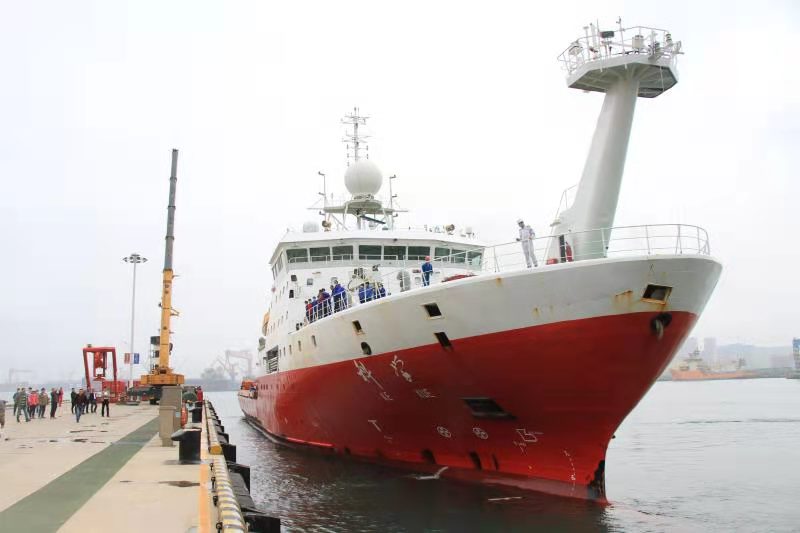 “科學(xué)”號(hào)駛?cè)胫锌圃汉Q笏骱0秷@區(qū)碼頭