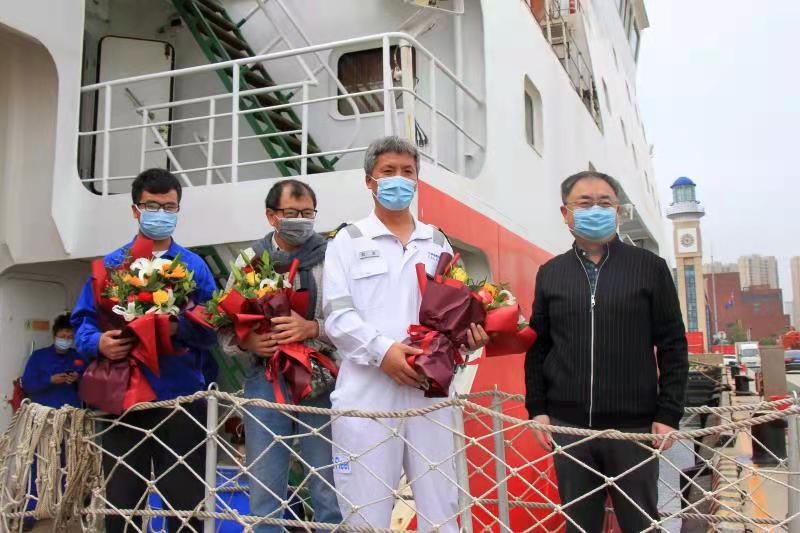 中科院海洋所總工程師刁新源、黨委委員李雷溪、綜合處和科考船運(yùn)管中心相關(guān)部門(mén)負(fù)責(zé)人、相關(guān)課題組人員等到碼頭接船。