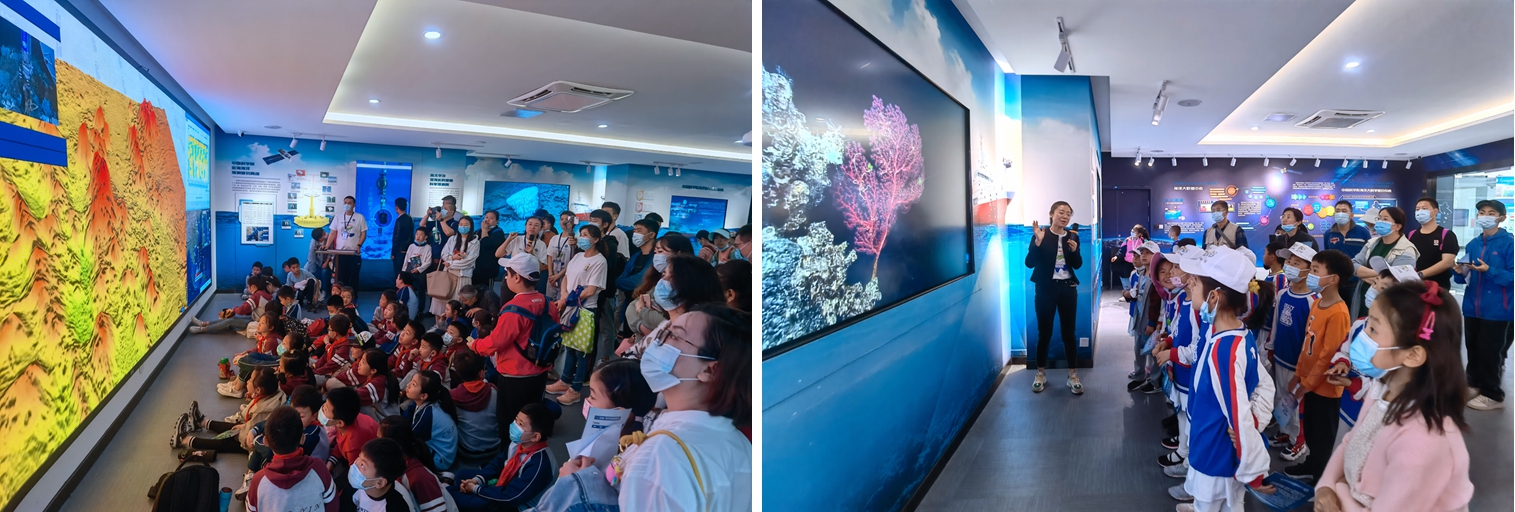 在海洋人工智能與大數(shù)據(jù)中心展廳,通過海洋數(shù)據(jù)可視化演示系統(tǒng),公眾看到了洋流、溫度、鹽度等海洋要素的全球分布,了解了人工智能在科學(xué)研究以及服務(wù)經(jīng)濟(jì)社會發(fā)展方面的實際應(yīng)用,也看到了利用“發(fā)現(xiàn)”號無人深潛器拍攝到的深海科考視頻,公眾們無不驚嘆于科技手段的進(jìn)步,震驚于幽幽深海中的生物竟如此多彩、各異而美麗,沉醉于大自然巧奪天工的天然呈現(xiàn)。