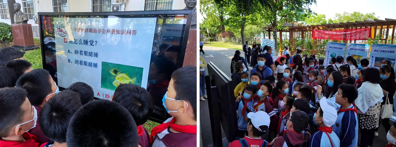 在海洋湖沼知識有獎問答環(huán)節(jié),圍滿了參加活動的孩子和家長。你問我答,在與工作人員的互動中,同學(xué)們學(xué)習(xí)了海洋湖沼知識,也增進(jìn)了公眾及青少年學(xué)習(xí)海洋知識的熱情。