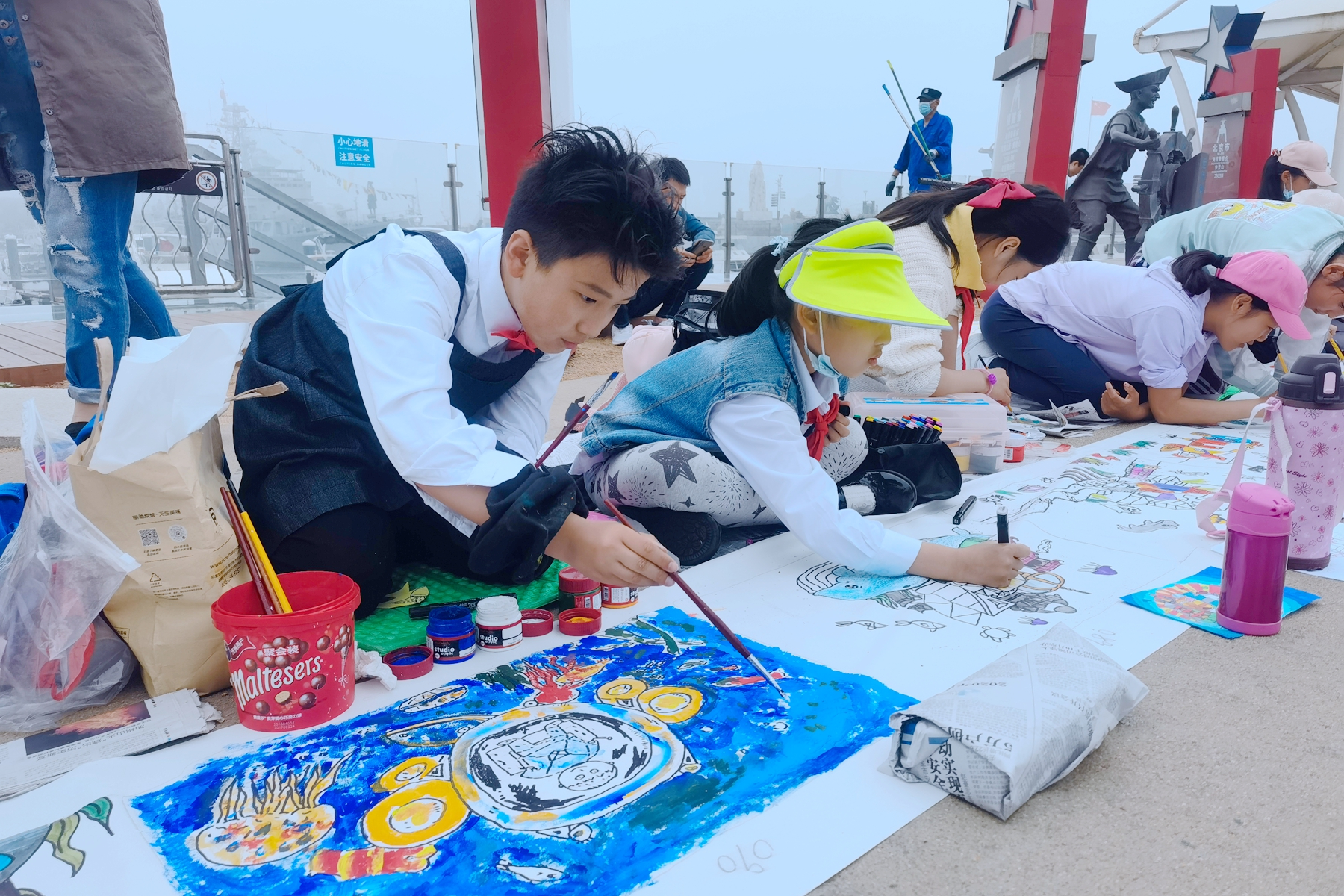 啟動儀式上,頒發(fā)了青島市第六屆中小學(xué)海洋節(jié)獎項。啟動儀式后,來自市區(qū)部分學(xué)校的100余名學(xué)生代表以“童心向黨、筑夢海洋——我心目中的海洋”為主題,在百米長卷上現(xiàn)場作畫,以手中的多彩畫筆抒發(fā)對海洋的關(guān)注、熱愛和保護(hù)之情,以特有的方式度過一個難忘的“六一”兒童節(jié)。