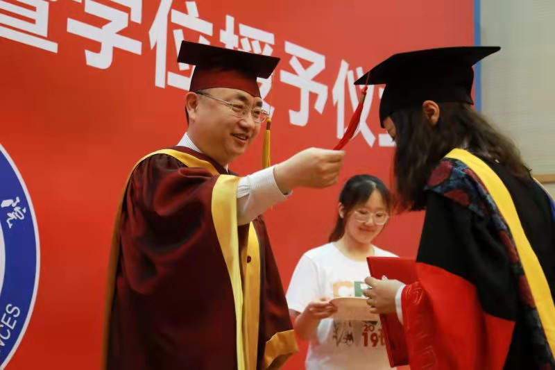 學(xué)位評(píng)定委員會(huì)主席王凡宣讀了2021屆畢業(yè)生學(xué)位授予名單,畢業(yè)生一一走到臺(tái)前,接受學(xué)位授予。隨后王凡發(fā)表了題為“幾載光陰磨利劍,今朝出鞘試鋒芒”的畢業(yè)致辭,對(duì)全體畢業(yè)生表示祝賀,肯定了大家在海岸帶所科研創(chuàng)新工作中做出的貢獻(xiàn),對(duì)全所導(dǎo)師和研究生的付出表示感謝。同時(shí)對(duì)畢業(yè)生提出期望,希望大家有“咬定青山不放松”的韌勁,“不破樓蘭終不還”的拼勁,“踏平坎坷成大道”的闖勁,他囑托大家站在新的起點(diǎn),把眼光放的更高、看的更遠(yuǎn),不斷提高夯實(shí)自己的專業(yè)基礎(chǔ),投身海洋科技事業(yè),為實(shí)現(xiàn)中華民族的海洋強(qiáng)國夢(mèng)做出更大貢獻(xiàn)。