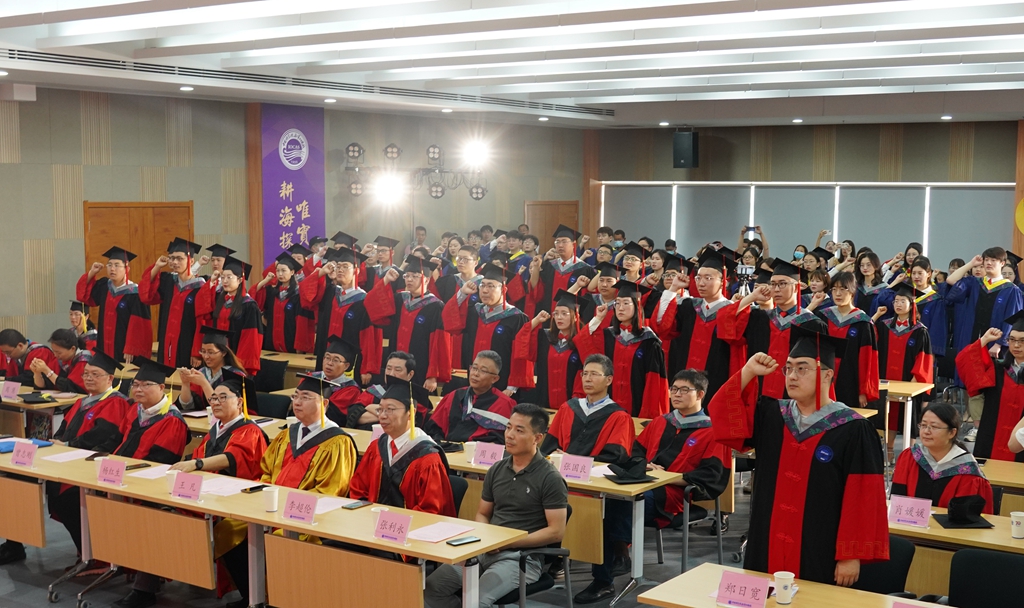 全體畢業(yè)生鄭重宣誓:堅(jiān)守中國科學(xué)院傳統(tǒng),弘揚(yáng)海洋研究所文化;唯實(shí)求真,踐行耕海探洋; 博學(xué)篤志,心系民族希望;格物明德,永做社會(huì)棟梁;創(chuàng)新報(bào)國,致力國家富強(qiáng)。