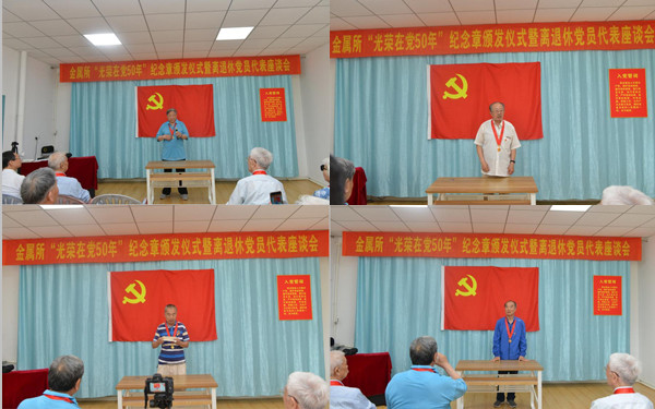6月24日,所黨委組織頒發(fā)“光榮在黨50年”紀(jì)念章,金屬所共有84位老黨員獲此殊榮。