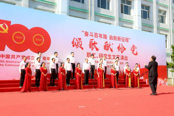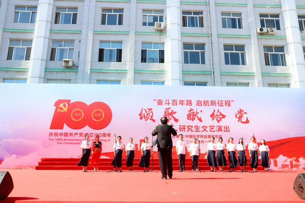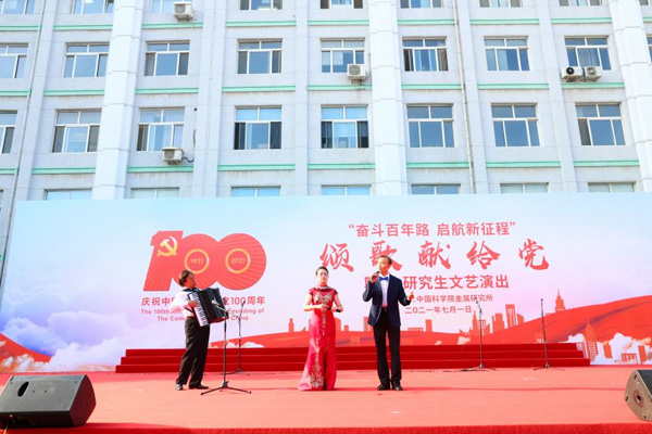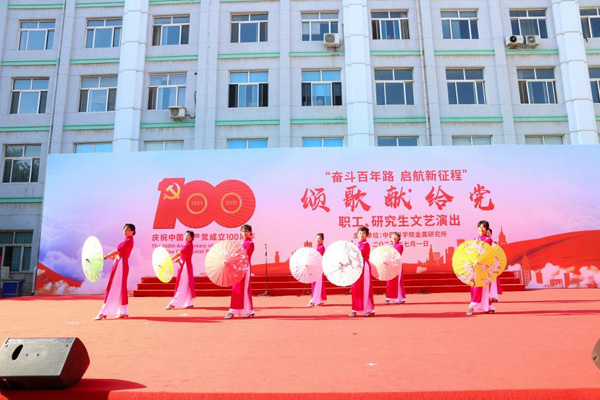 7月1日下午,金屬所慶祝中國(guó)共產(chǎn)黨成立100周年職工、研究生“頌歌獻(xiàn)給黨”文藝匯演在葛庭燧樓前廣場(chǎng)隆重舉行。在所黨政班子成員、李依依院士,以及廣大職工、研究生現(xiàn)場(chǎng)觀看了文藝演出,共同慶祝中國(guó)共產(chǎn)黨百年華誕。