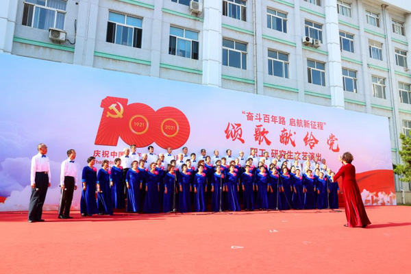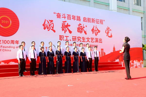 整場(chǎng)演出振奮人心、催人奮進(jìn)。在各分工會(huì)、黨支部的精心策劃和組織下,歷時(shí)近3個(gè)月,呈現(xiàn)了一臺(tái)高質(zhì)量的文藝演出,充分表達(dá)了廣大職工和研究生永遠(yuǎn)跟黨走、昂首闊步邁向全面建設(shè)社會(huì)主義現(xiàn)代化國(guó)家新征程的豪情壯志,充分展現(xiàn)了大家團(tuán)結(jié)奮進(jìn)、銳意進(jìn)取的精神風(fēng)貌,也將“七一”當(dāng)天慶祝建黨百年活動(dòng)推向了最高潮。