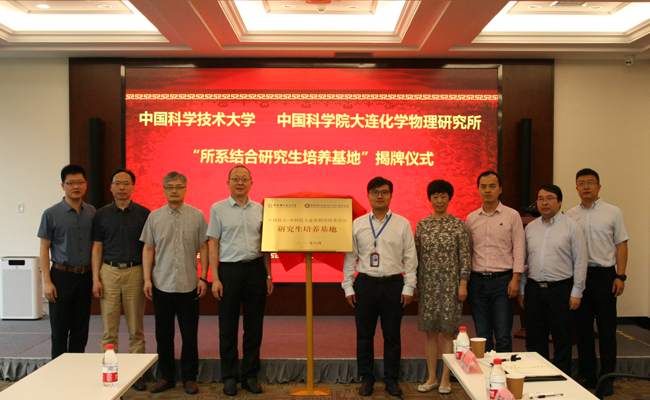 6月29日,中國科學(xué)技術(shù)大學(xué)與中國科學(xué)院大連化學(xué)物理研究所“所系結(jié)合研究生培養(yǎng)基地”揭牌儀式在交流中心第四會議室舉行。中國科學(xué)技術(shù)大學(xué)化學(xué)與材料科學(xué)學(xué)院執(zhí)行院長劉世勇、化學(xué)與材料科學(xué)學(xué)院副院長鄧兆祥、研究生院所系結(jié)合辦公室副主任夏清泉等;大連化物所副所長王峰,研究室(部)、職能部門相關(guān)人員參加活動。揭牌儀式由大連化物所研究生部主任熊博暉主持。