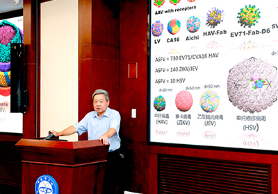 報(bào)告中,饒子和詳細(xì)介紹了其在解析COVID-19病原體SARS-CoV-2的一系列工作,通過(guò)構(gòu)建SARS-CoV-2巨大的蛋白質(zhì)復(fù)合體,以結(jié)構(gòu)生物學(xué)視角研究了SARS-CoV-2在宿主細(xì)胞中的復(fù)制等過(guò)程,為開(kāi)發(fā)SARS-CoV-2抗病毒藥物提供了思路。