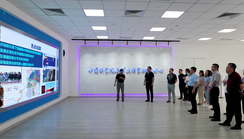各位代表認(rèn)真聽取了海洋所歷史沿革、代表性科研成果以及海洋大科學(xué)中心建設(shè)架構(gòu)和體制機(jī)制等方面匯報(bào),詳細(xì)了解了中心科研平臺(tái)整合、重大任務(wù)牽引、重大科研產(chǎn)出、創(chuàng)新成果轉(zhuǎn)化等方面取得的階段性進(jìn)展,并通過(guò)可視化系統(tǒng)展示深入了解風(fēng)暴潮預(yù)警預(yù)報(bào)、近海生態(tài)災(zāi)害預(yù)測(cè)預(yù)警方面的最新成果。