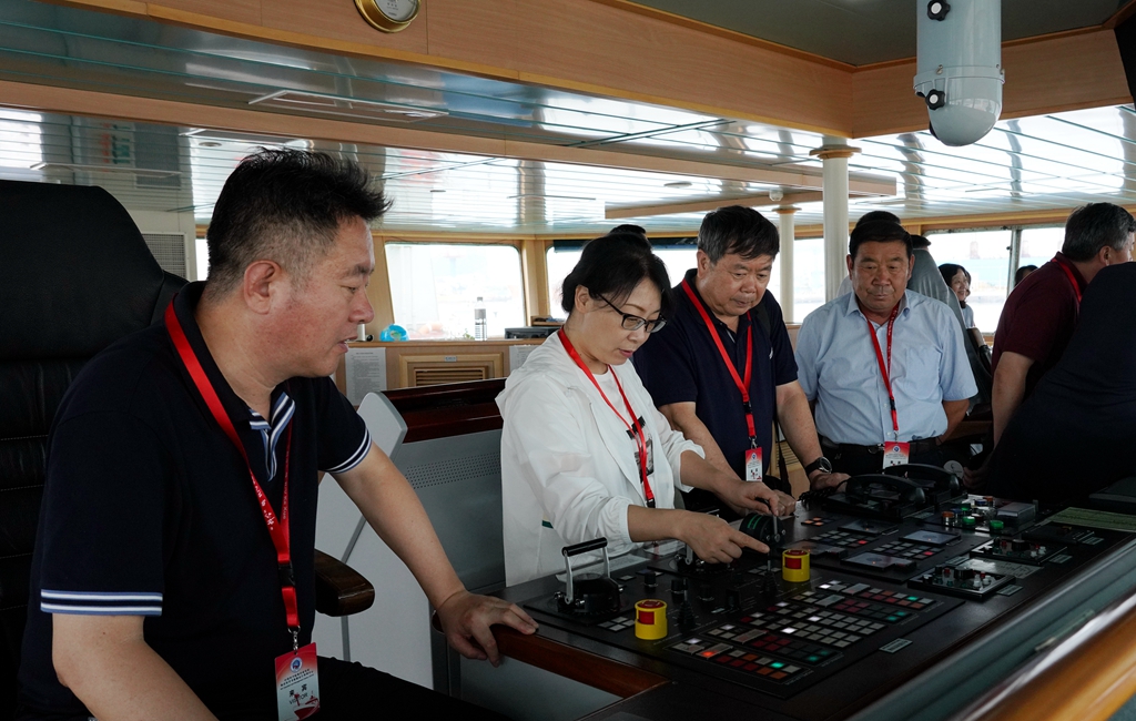 代表們參觀“科學(xué)”號(hào)駕駛臺(tái)