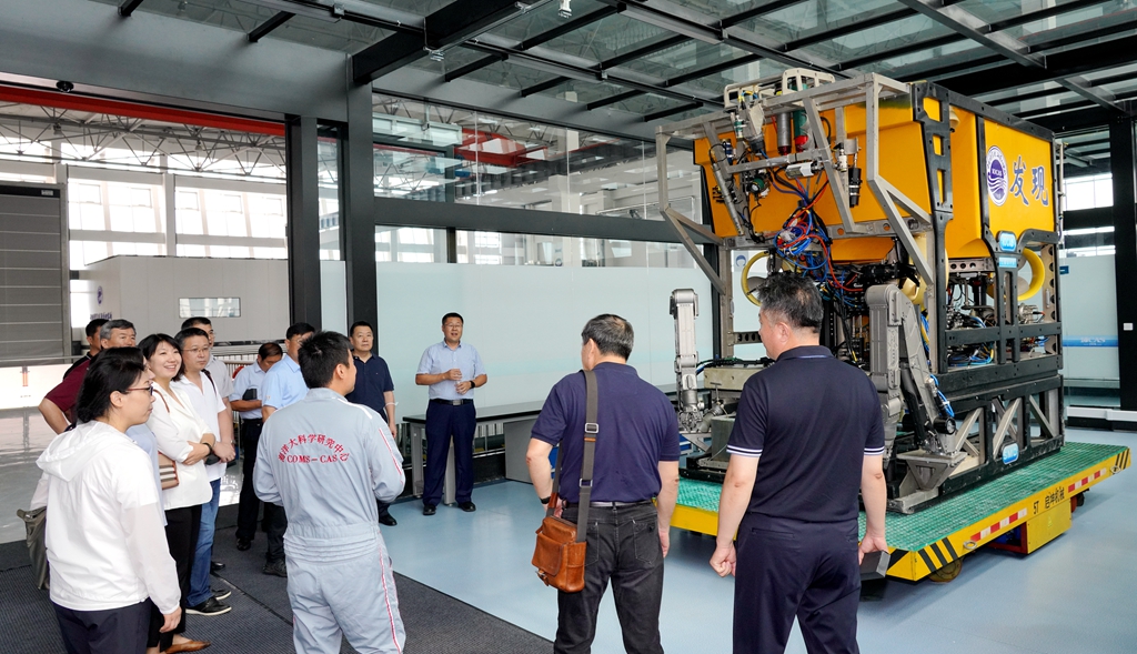 在青島海洋觀測(cè)技術(shù)研發(fā)與測(cè)評(píng)中心,代表們參觀了“發(fā)現(xiàn)”號(hào)ROV維保車間、模擬訓(xùn)練室、海洋傳感器評(píng)價(jià)與測(cè)試實(shí)驗(yàn)室等。該中心由中科院海洋所牽頭,聯(lián)合中國(guó)計(jì)量科學(xué)研究院、中國(guó)地質(zhì)調(diào)查局青島海洋地質(zhì)研究所等科研院所及北京勞雷海洋儀器有限公司、貴州鋼繩股份有限公司、德國(guó)康楚斯公司、挪威安德拉公司等國(guó)內(nèi)外知名企業(yè)共同組建,旨在進(jìn)一步提高海洋觀測(cè)創(chuàng)新體系整體效能,加快構(gòu)建龍頭企業(yè)牽頭、高校院所支撐、各創(chuàng)新主體相互協(xié)同的創(chuàng)新聯(lián)合體。