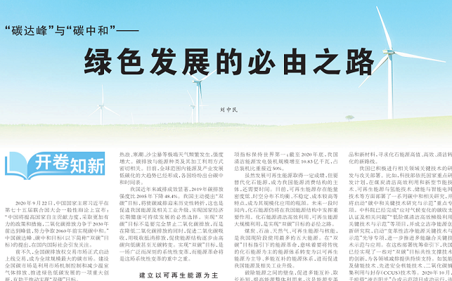 8月13日,中國科學院大連化學物理研究所劉中民院士受邀在《人民日報》“開卷知新”欄目發(fā)表《綠色發(fā)展的必由之路》主題文章,介紹“雙碳”知識概念及我國實現(xiàn)“雙碳”目標的必要性、緊迫性和可實施路徑等。