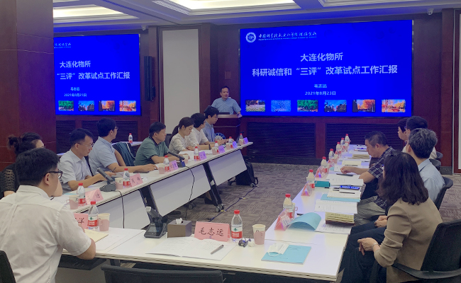 8月23日至24日,遼寧省科技廳組織東北大學(xué)、中科院沈陽(yáng)分院等單位相關(guān)專家一行7人,來(lái)中國(guó)科學(xué)院大連化學(xué)物理研究所開(kāi)展科研誠(chéng)信和“三評(píng)”改革績(jī)效評(píng)估工作。大連化物所黨委副書(shū)記、紀(jì)委書(shū)記毛志遠(yuǎn),科研及職能部門(mén)相關(guān)人員參加活動(dòng)。