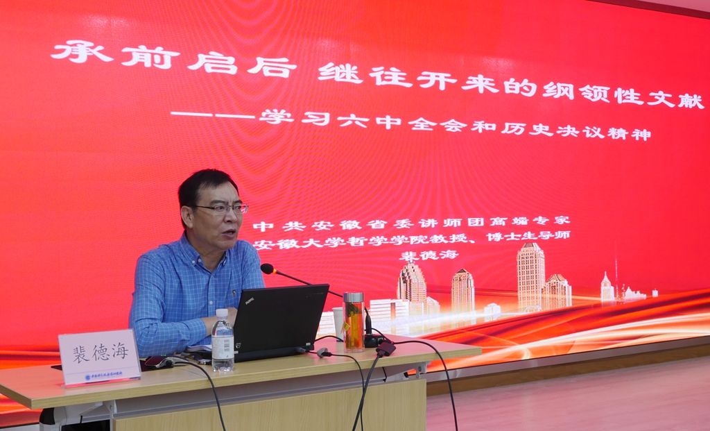 裴德海教授從六中全會(huì)的議程和重大意義、《歷史決議》的主要內(nèi)容、全面貫徹落實(shí)六中全會(huì)精神方面進(jìn)行了詳細(xì)的解讀,指出中國(guó)共產(chǎn)黨百年奮斗史的主線主題是始終把為中國(guó)人民謀幸福、為中華民族謀復(fù)興作為自己的初心使命,始終堅(jiān)持共產(chǎn)主義理想和社會(huì)主義信念;強(qiáng)調(diào)確立習(xí)近平同志黨中央的核心、全黨的核心地位,確立習(xí)近平新時(shí)代中國(guó)特色社會(huì)主義思想的指導(dǎo)地位是歷史和時(shí)代的選擇。報(bào)告內(nèi)容系統(tǒng)全面,對(duì)于引領(lǐng)大家堅(jiān)定發(fā)展自信、凝聚發(fā)展共識(shí),以黨建工作推動(dòng)科技創(chuàng)新,具有很好的指導(dǎo)和借鑒意義。