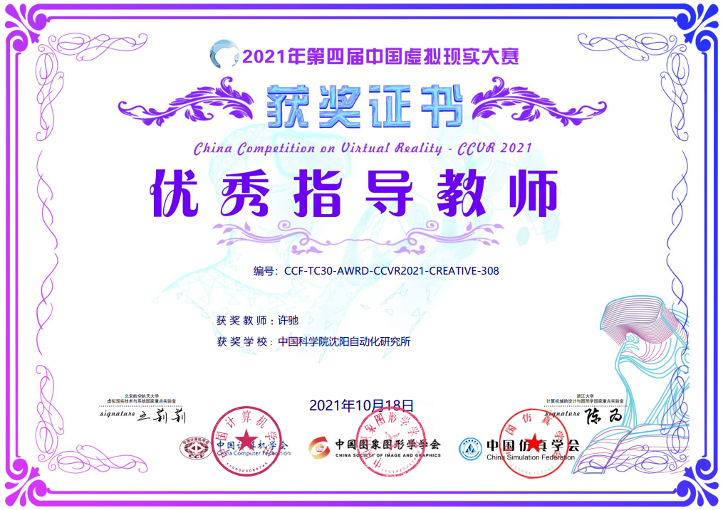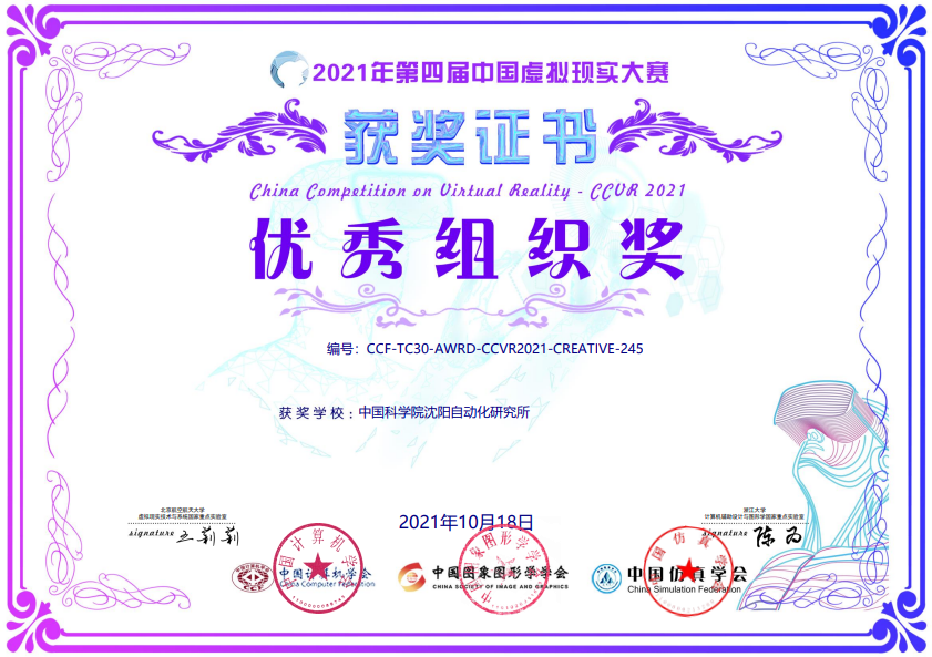 10月17日-18日,第四屆中國虛擬現(xiàn)實(shí)大賽決賽在中國南昌舉行,中國科學(xué)院沈陽自動化研究所工業(yè)控制網(wǎng)絡(luò)與系統(tǒng)研究室組成的SIA_Touchable團(tuán)隊(duì)經(jīng)過初賽、決賽等多個(gè)環(huán)節(jié)在應(yīng)用類智能互動賽道中脫穎而出,獲大賽一等獎,沈陽自動化所獲得優(yōu)秀組織獎,許馳副研究員獲優(yōu)秀指導(dǎo)教師。