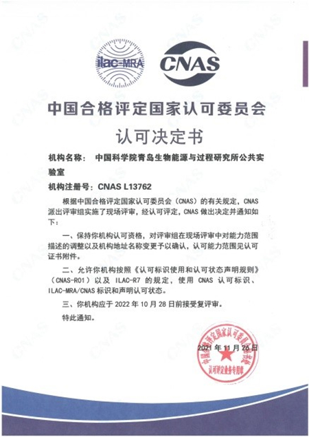 近日,青島能源所公共實(shí)驗(yàn)室成功通過由中國(guó)合格評(píng)定國(guó)家認(rèn)可委員會(huì)(CNAS)組織的監(jiān)督評(píng)審,獲得了由CNAS頒發(fā)的認(rèn)可決定書(注冊(cè)號(hào)CNAS L13762)。這標(biāo)志著公共實(shí)驗(yàn)室的認(rèn)可資格獲得保持,技術(shù)能力持續(xù)符合ISO/IEC 17025:2017《檢測(cè)和校準(zhǔn)實(shí)驗(yàn)室能力的通用要求》和CNAS-CL01《檢測(cè)和校準(zhǔn)實(shí)驗(yàn)室能力認(rèn)可準(zhǔn)則》要求。