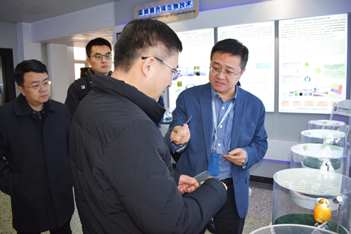 調研期間,丁赤飚一行現場調研了我所(含能)材料生物合成技術中心、泛能源大數據與戰(zhàn)略研究中心、固態(tài)能源系統(tǒng)技術中心、微生物制造工程中心、單細胞中心。