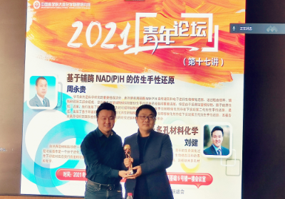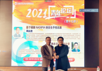 12月21日,中國科學院大連化學物理研究所青年創(chuàng)新促進會(以下簡稱“青促會”)、大連化物所團委、博士后聯(lián)誼會共同在能源基礎(chǔ)樓舉辦“大連化物所青年論壇”第十七講。本次論壇邀請了手性合成研究組(201組)組長周永貴研究員和納米反應器與反應工程學創(chuàng)新特區(qū)研究組(05T7組)組長劉健研究員,分別作了題為“基于輔酶NAD(P)H的仿生手性還原”和“納米多孔材料化學”的精彩報告。大連化物所副所長李先鋒出席本次論壇,并為兩位報告人頒發(fā)“大連化物所青年論壇”特制獎杯。大連化物所內(nèi)青年職工、博士后、研究生等近100人以線下和線上的方式聽取了報告。