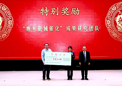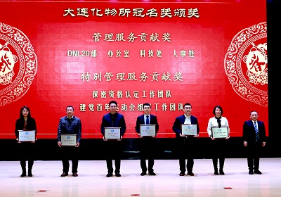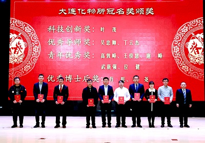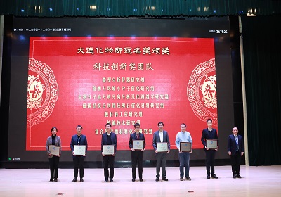 會(huì)議表彰了2021年度冠名獎(jiǎng)。黨委書記金玉奇宣讀了冠名獎(jiǎng)的表彰決定。會(huì)議采用頒獎(jiǎng)詞和視頻播放相結(jié)合的形式,介紹了2021年度冠名獎(jiǎng)獲得團(tuán)隊(duì)和個(gè)人的突出事跡,并特別獎(jiǎng)勵(lì)了榮獲2020年度國(guó)家自然科學(xué)一等獎(jiǎng)的科研團(tuán)隊(duì)。所長(zhǎng)劉中民為獲獎(jiǎng)團(tuán)隊(duì)和個(gè)人頒獎(jiǎng)。