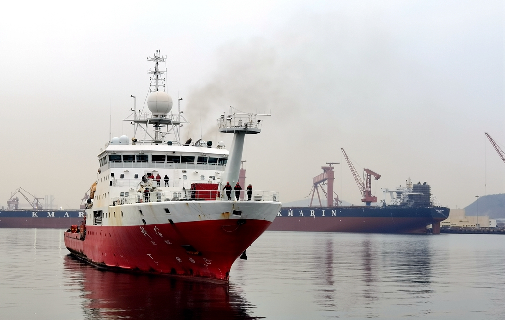 “科學(xué)”號緩緩駛?cè)肽父?/p>