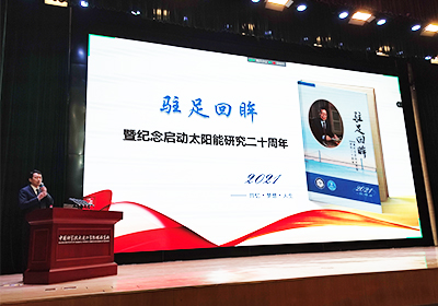 太陽能研究部李仁貴研究員作為團隊成員代表,作了題為“逐夢追光二十載——紀念太陽能研究二十周年”的報告,分別從歷史回顧、重要時間節(jié)點的代表性工作與事件、取得的研究成果概述、未來展望等四個方面,回顧了大連化物所太陽能研究從零開始到今天的發(fā)展歷程。