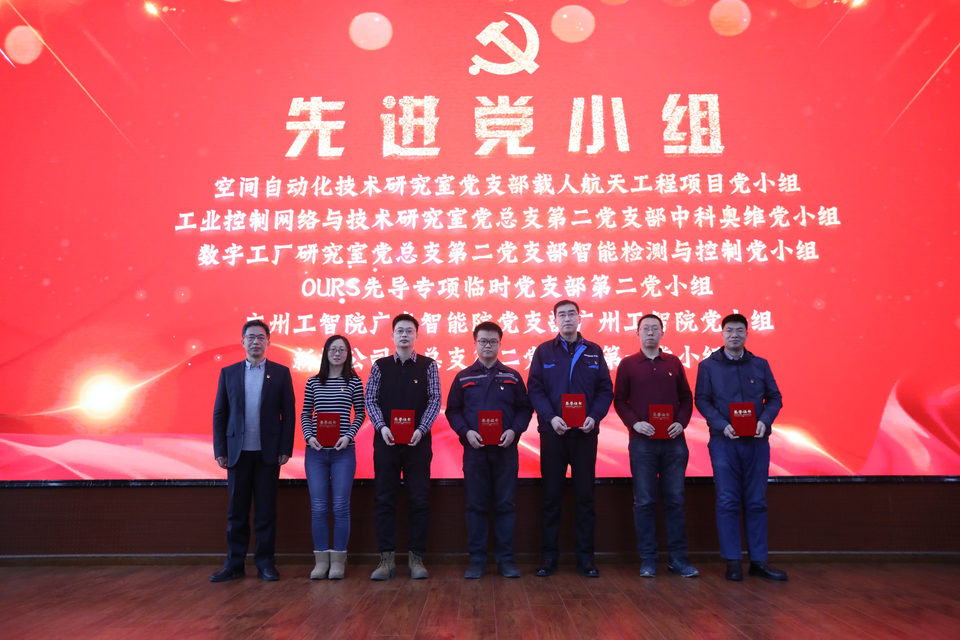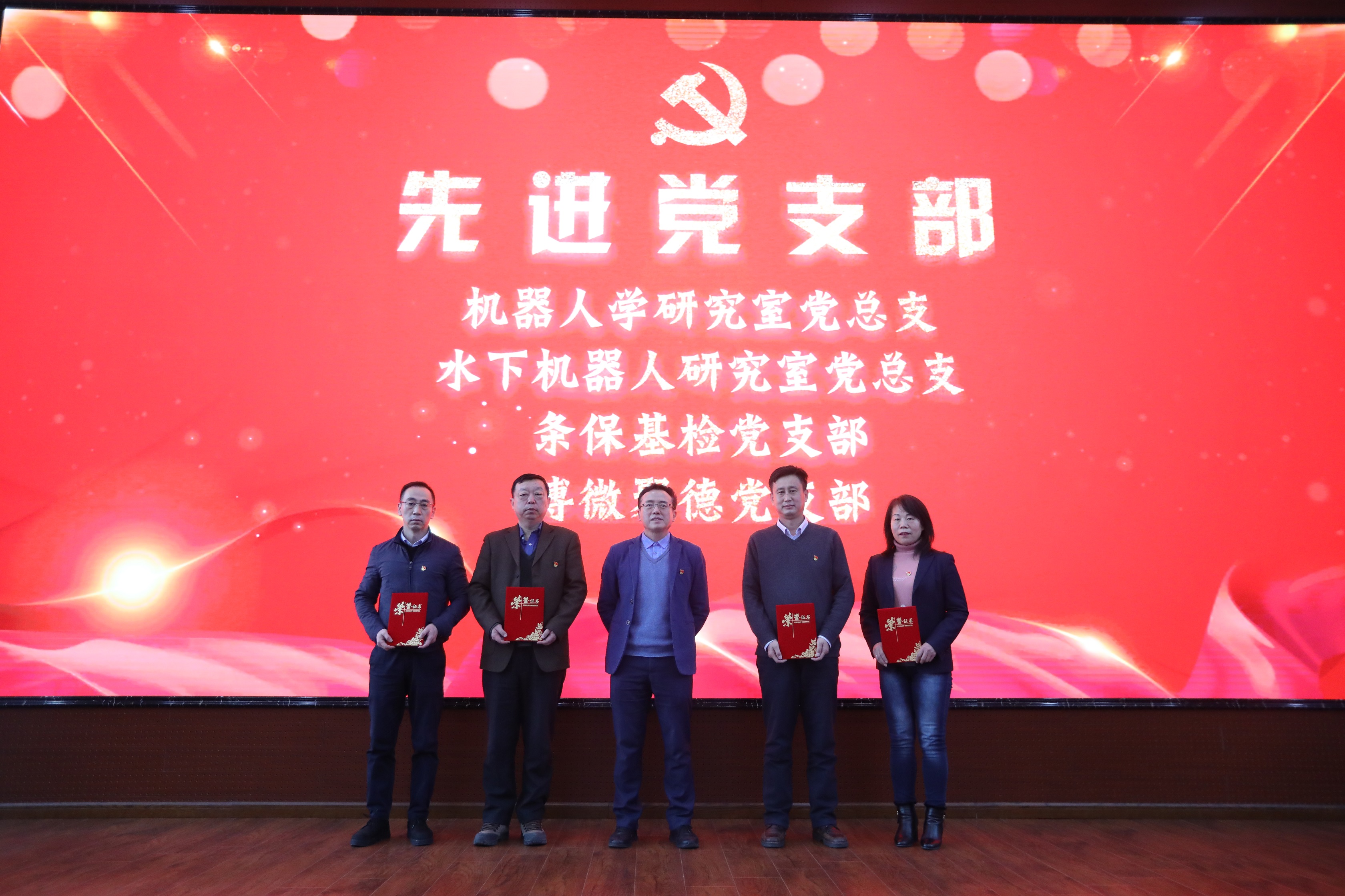所長史澤林宣讀了黨委2021年度“兩先兩優(yōu)”表彰決定。與會所領(lǐng)導(dǎo)、王天然院士為獲獎集體和個人頒獎。機(jī)器人學(xué)研究室黨總支、水下機(jī)器人研究室黨總支、條保基檢黨支部、博微聚德黨支部獲評先進(jìn)黨支部;空間自動化技術(shù)研究室黨支部載人航天工程項目黨小組、工業(yè)控制網(wǎng)絡(luò)與技術(shù)研究室黨總支第二黨支部中科奧維黨小組、數(shù)字工廠研究室黨總支第二黨支部智能檢測與控制黨小組、OURS先導(dǎo)專項臨時黨支部第二黨小組、廣州工智院廣東智能院黨支部廣州工智院黨小組、新松公司黨總支第二黨支部第一黨小組獲評先進(jìn)黨小組; 郭銳、張曉揚、皮英民、楊光華、劉鼎獲評優(yōu)秀黨務(wù)工作者;于鵬、郭峰、路達(dá)、郝穎明、邱教通、鄧月誠、張嘯、崔健、趙偉、楊博、羅賽、景濤、王海龍、趙楊、王作鵬、張滌、王海昕、王笑寒、黃德春、杜玲玲、熊俊峰、孔慶輝、李斌、車菲、康曉康、謝霞、韓永尚、龐龍龍、王振興、萬廣喜、楊楠、張盼盼獲評優(yōu)秀黨員。