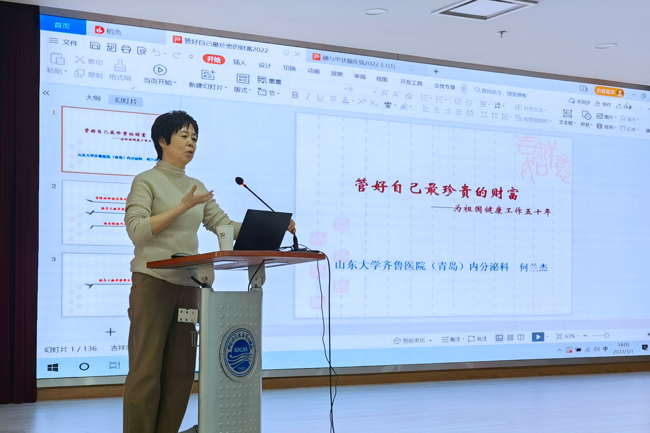 三八國際勞動婦女節(jié)前夕,海洋所工會組織開展“關愛女性健康”系列活動,邀請山東大學齊魯醫(yī)院(青島)內(nèi)分泌科主任、健康管理中心主任何蘭杰為全所女職工作健康知識專題講座。