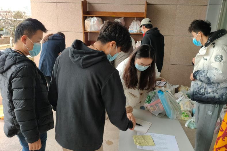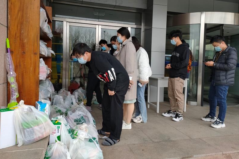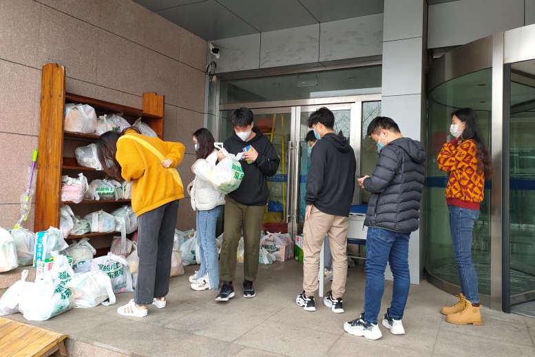 3月29日下午3:30,通過微信小程序“利客來到家”集中采購的第一批生鮮水果等,經(jīng)過統(tǒng)一消殺后送到了海洋所研究生公寓同學(xué)們手中。