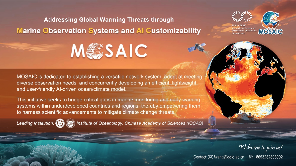 為破解這一全球性難題,中國科學院海洋研究所所長王凡研究員聯(lián)合馬達加斯加、埃及、葡萄牙、秘魯、巴拿馬等國家科研機構(gòu)的科學家,共同發(fā)起了“AI賦能智慧觀測應對氣候變暖威脅”(英文:Addressing Global Warming Threats through Marine Observation Systems and AI Customizability,簡稱MOSAIC)國際科學計劃。該計劃旨在利用海洋所在海洋觀測及AI海洋模型研發(fā)領(lǐng)域的國際領(lǐng)先成果,通過技術(shù)創(chuàng)新,提升全球海洋觀測的效率和可及性。